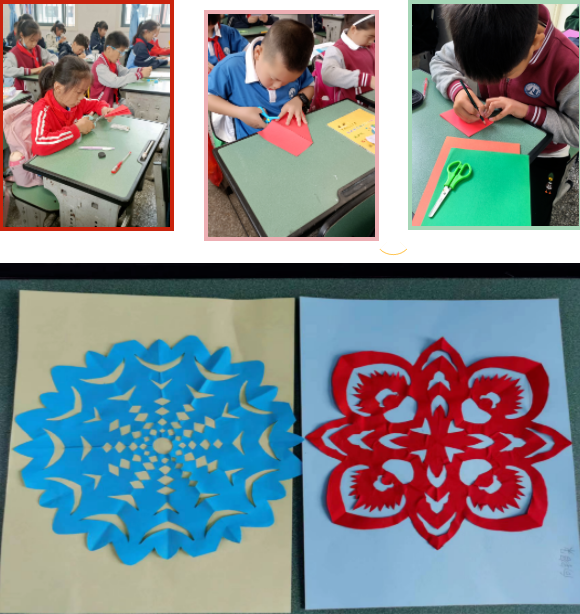 剪纸作为我国传统文化,在中华民族历史长河中散发出如宝石般璀璨的光芒。剪纸比赛中,孩子们充分发挥创意。操作时注重传统和现代剪纸艺术相结合,运用镂空剪、对称剪等技法。每个孩子都那么专注和细心,一张张漂亮的剪纸作品从孩子们指尖蹦出,象极了孩子们开心的笑脸。