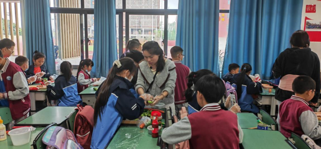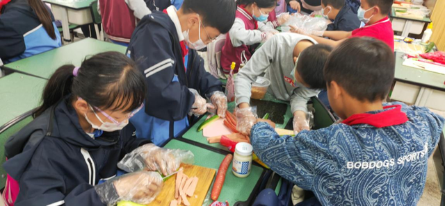 五年级比赛项目——制作寿司。比赛前,老师仔细讲解制作流程:准备食材、制作、装盘、点缀等。赛中,孩子们都精益求精,务必做到最好,由最初的动作生涩,到熟能生巧,最后制作出一盘盘精致美味的寿司。接下来让我们一起欣赏孩子们的劳动过程和劳动成果吧!