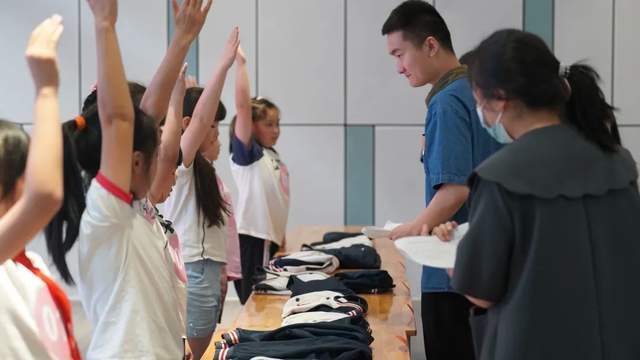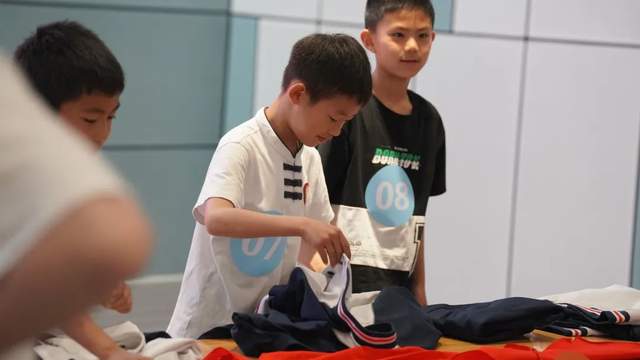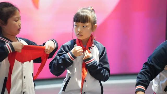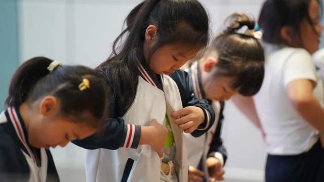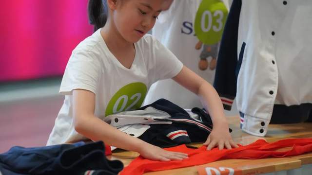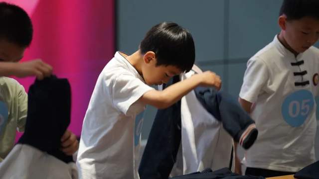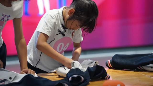 看,小小的双手多能干呀!能穿衣能戴红领巾!选手们紧张专注的进行着比赛的同时,小观众们也为他们暗暗捏拳,紧张不已。