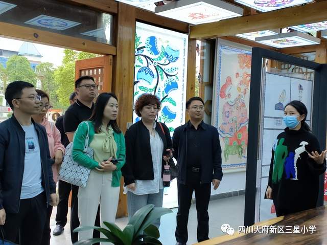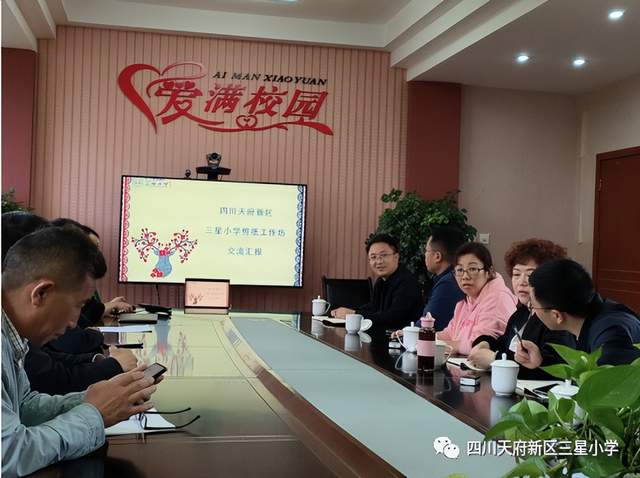 在综合楼三楼会议室,跟岗小组听取了剪纸工作中心和劳动教育中心主题汇报。首先剪纸工作中心主任王先梅从“五实五美”介绍了学校剪纸特色工作开展、剪纸特色课程建设、课程纵向发展及分层教学工作情况。剪纸特色课程的横向发展,创作了“剪纸日记”“剪纸绘本”和“剪纸定格动画”;传统剪纸、手绘心像、创意剪纸三项课程的再创造,让三星小学学生剪纸作品再次深度发展,更具个性化、更有童趣,孩子的想象力和创造力得到进一步发展和提升。