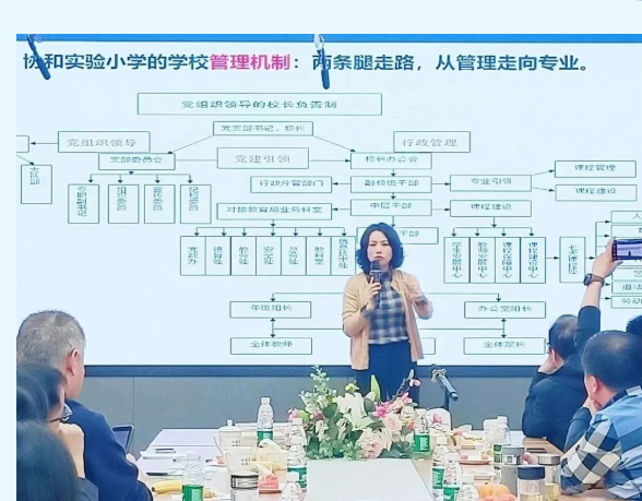 首先,夏校长对南京校长们的到来表示热烈欢迎,并在实地体验学校的中草药基地、怡心成长支持中心、少先队大队部、党建室等教育环境的基础上,向大家介绍了协和实小办学理念以及心湖教师发展情况,“领先的教育理念,专业的师资团队,鲜明的办学特色,灵动的学生团体”赢得了在座校长们的真挚掌声。