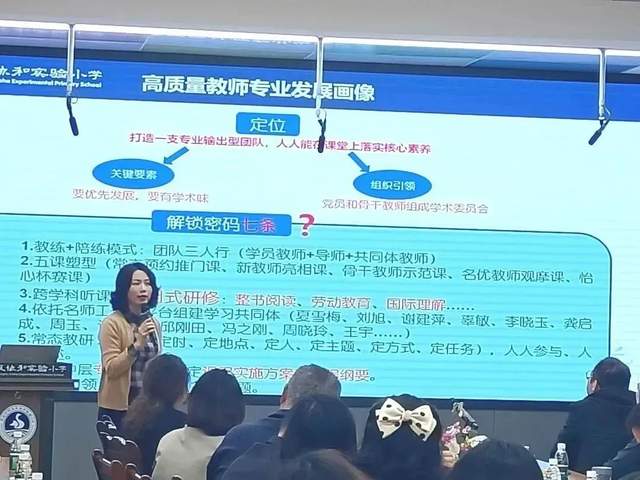 教师发展中心樊小娟主任做了名为《破解教师专业梯级发展密码,从“要我发展”到“我要发展”——教师专业发展阶梯化》主题分享,从以下三个方面为来宾详细介绍了双流区协和实验小学在教师专业发展中的具体做法: