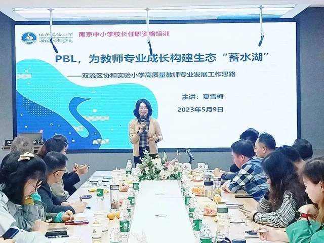 夏雪梅校长做名为《PBL,为教师专业成长构建生态“蓄水池”——双流区协和实验小学高质量教师专业发展工作思路》的讲座,为大家讲解什么是“PBL”,谁是“蓄水人”,讲解双流区协和实验小学紧跟时代步伐,深耕学校文化,在锐意进取中稳步发展的创新之道。