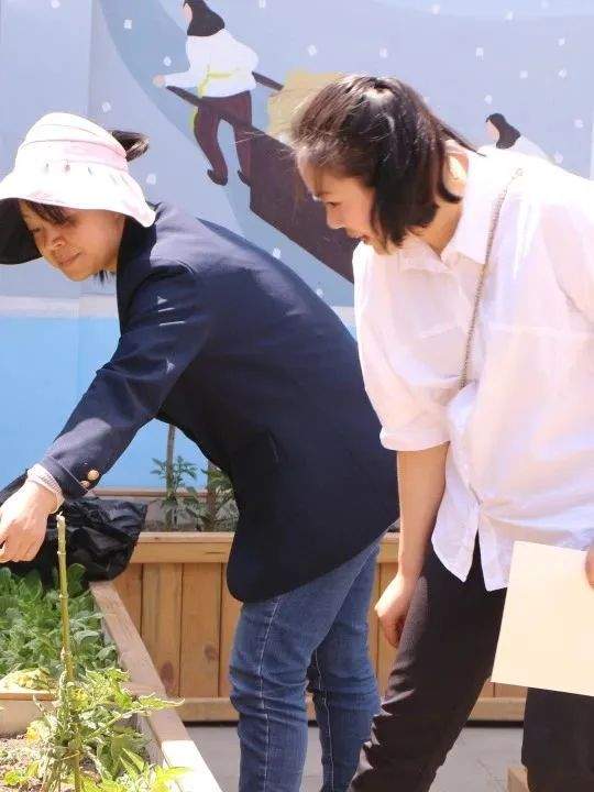 校级家委会成员们在老师们的带领下走进学校劳动基地,参观“三味蔬香园”,三位老师向各位家长介绍学校劳动课程及23个班级种植的蔬菜,让家长委员们进一步理解在田园实践中,劳动的意义和价值。