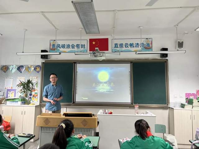 梓媛爸爸不断引导孩子们分析文本,立足文本找寻问题的答案,使孩子们对文本内容有了更加深入的认识,激发探索的兴趣,又引导孩子们进行思维的碰撞,当课堂上思维的火花不断闪现时,对景物的分析也告一段落,孩子们沿流溯源,不但把握了意象的特点,对意境的把握自然水到渠成。