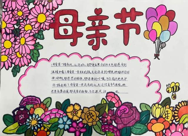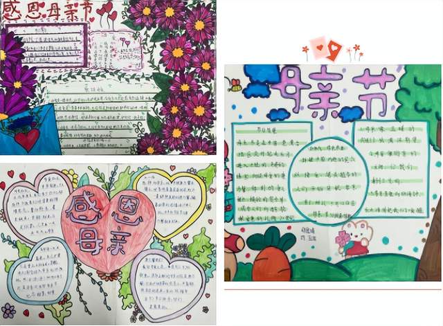 3-5年级的同学通过绘制手抄报的形式,把母恩表达在文字里面,表达在绘画里面。
