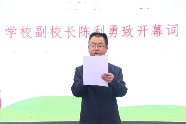 天府新区白沙小学副校长陈利勇为本次亲子运动会致开幕辞,希望孩子们在运动场上挑战自我,勇敢自信。同时也期待家长与孩子们在体育运动中取得佳绩,享受快乐。