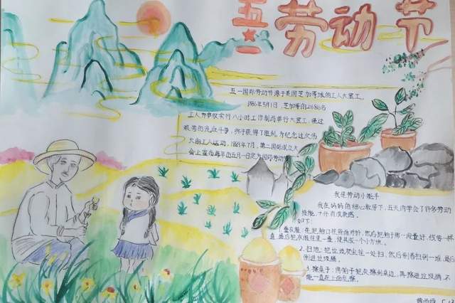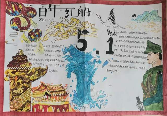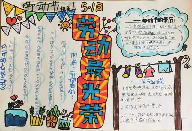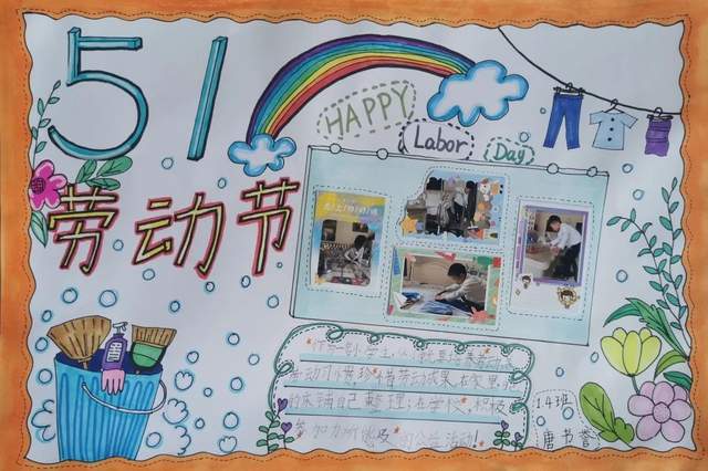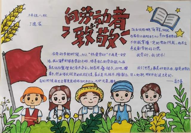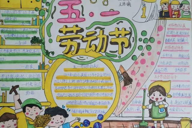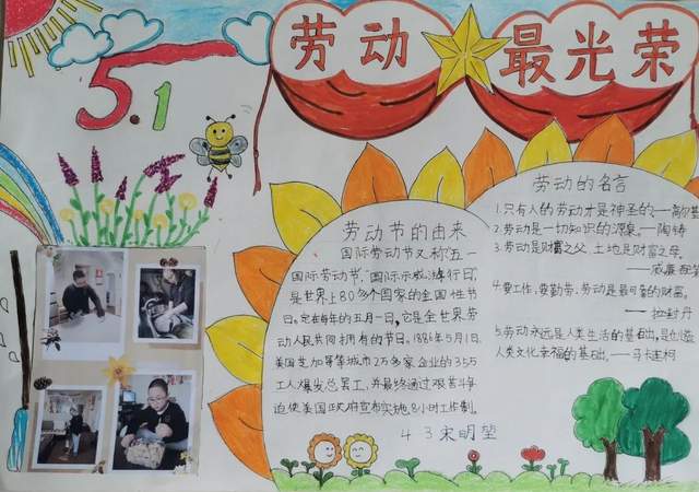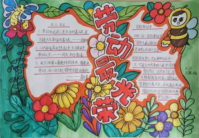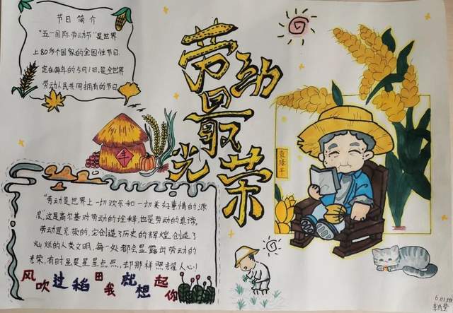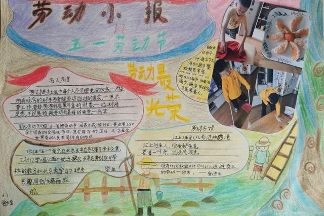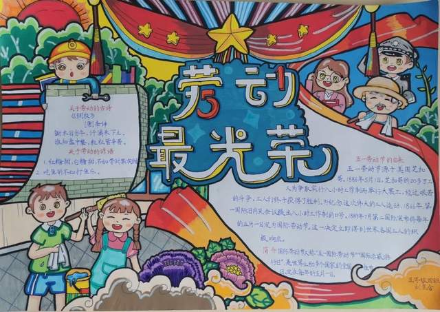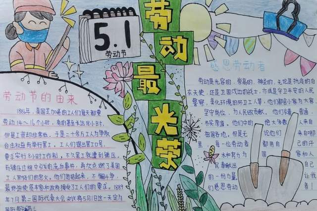 劳动者的美,是浓烟滚滚中挺身而出化上的“烟熏妆”,是烈日灼阳下潜心工作烙下的“日晒红”,是汗水洒落时专注坚守留下的“汗渍白”。同学们用一张张手抄报绘出了对劳动者的赞颂。