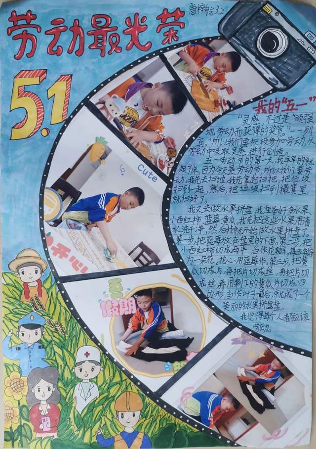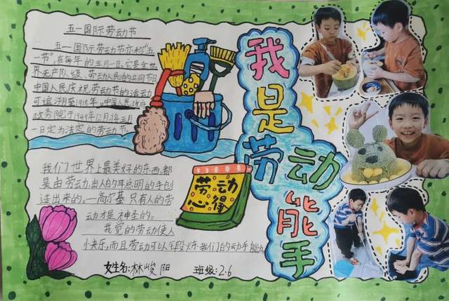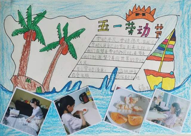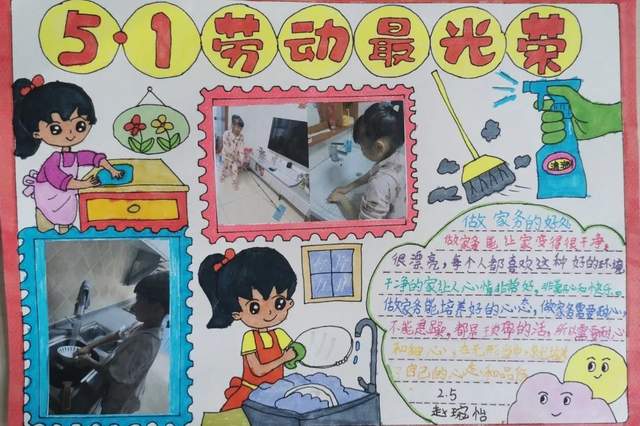 孩子们积极参与积星活动,折衣服、擦桌、扫地、做水果拼盘、画小报,不仅感受了劳动的艰辛与喜悦,也收获了满满的劳动技能。瞧,孩子们把自己的劳动身影融入了小报制作中,大放异彩!