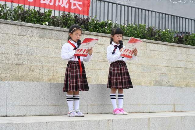 升旗仪式主持人为王媛溪、吕雉萌同学。