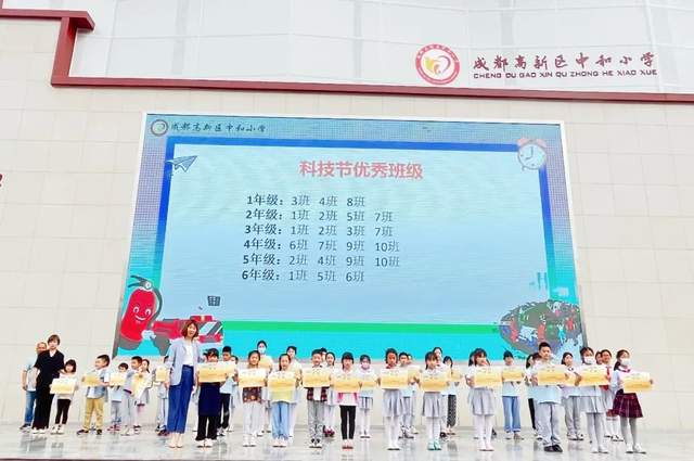 科技兴则民族兴,科技强则国家强!为贯彻实施《中共中央国务院关于加强科学技术普及工作的若干意见》及落实《关于进一步加强中小学科技教育工作的通知》,积极推动成都高新区科技活动的蓬勃开展,普及科学知识,提高学生科技文化素质,落实“兴趣为先、普及全体、个性发展”的科技教育目标。成都高新区中和小学于5月11日开展了主题为“匠芯科技 筑梦未来”首届校园科技节活动。本次升旗仪式对在科技节活动中表现优异、成绩突出的个人和班级进行了表彰。