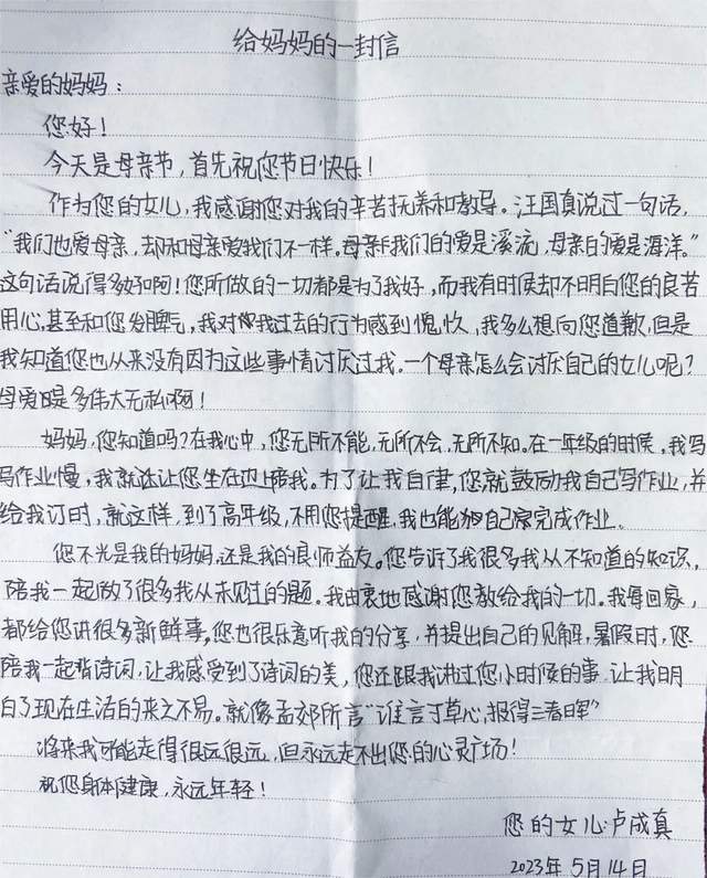 2023年5月14日,母亲之节,母亲的爱如五月一般温柔,我们熟知“慈母手中线,游子身上衣”,又闻,“爱子心无尽,归家喜及辰”,母亲的爱不是汹涌的海浪,也不是优美的诗词,它是一针一线的浸润,也是眼角带笑的喜悦。