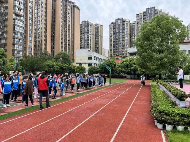 在听到“地震警报”信号结束后,老师们按照指定路线,安全有序指挥同学们从教室撤离到操场上指定集合点。短短3分钟内,同学们有序疏散到操场,200多名师生全部安全撤离。