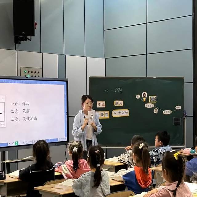 王雪娇老师与李捷老师共同执教的是课文《一分钟》,先后呈现了本课的一、二课时。在课堂中,王老师精准把握低段孩子的学情,注重低段教学中的“三个结合”,其中将识字与游戏相结合,充分提高了学生的课堂积极性。李老师的第二课时教学结构化地出示词语组合,不仅检验了学生的识字,还巩固了课文重点。引导学生反复练习“因为......所以......”句式,落实本单元中“根据信息做简要的推断”这一语文要素。