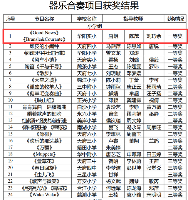 此次参赛的四个项目:校园剧、课堂器乐、朗诵、表演唱,均荣获一等奖!