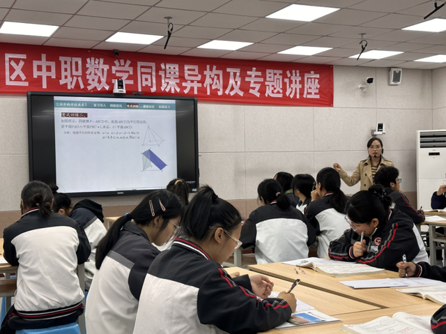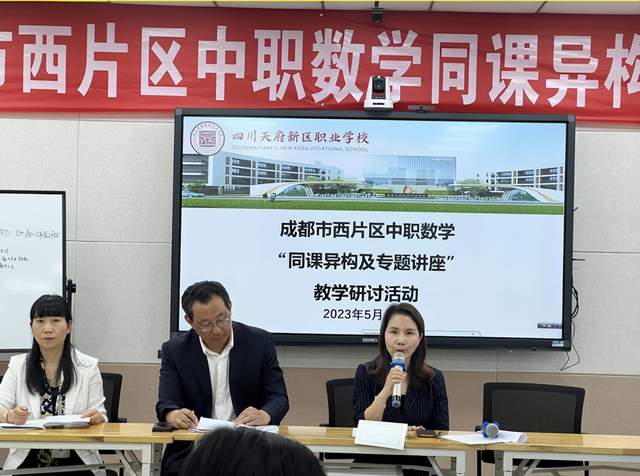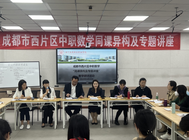 2023年5月11日,成都市西片区中职数学“同课异构寻好课及专题讲座”教学研讨活动在四川天府新区职业学校举行。本次教研活动由三部分组成,一是同课异构教学展示,课题为高三第二轮专题复习课《空间中的平行关系》,二是议课,三是专题讲座,西片区职教教研员、中职数学老师等参与了本次教研活动。