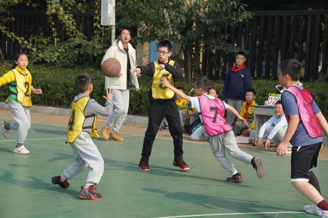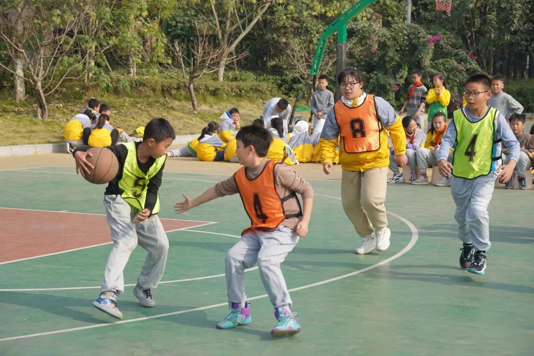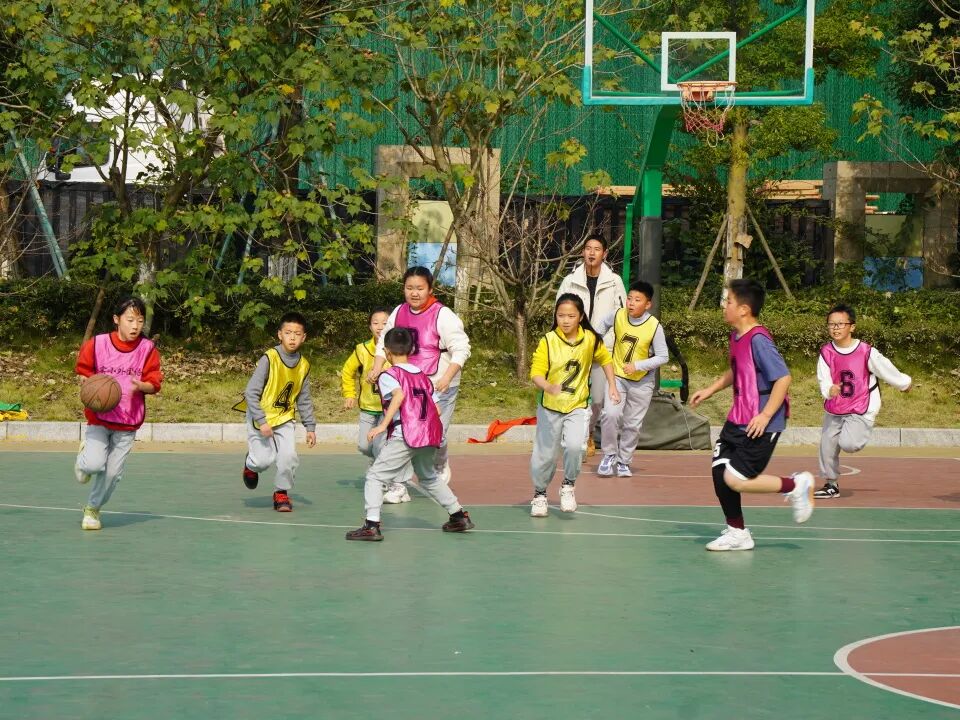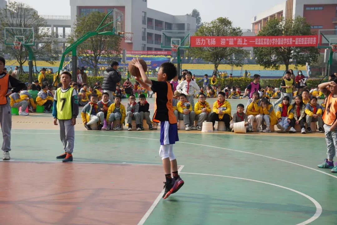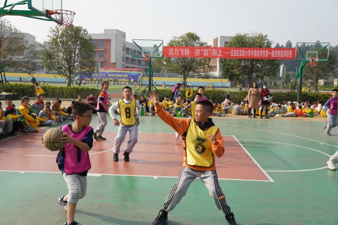 成都市双流区实验小学外国语学校一直致力于“五育并举”,落实国家“双减”政策。我校通过开展丰富的学生课余体育生活,保障学生每天锻炼一小时,助力学生体质健康提升,让每一个孩子真正享受阳光体育带来的健康和快乐。为了激发学生课间“走出教室、冲向操场”去快乐运动的兴趣,以体树德、以体增智、以体育美、以体促劳,强化学生素质,促进学生全面发展,展示学生阳光体育、积极向上的精神风貌,成都市双流区实验小学外国语学校利用校园体育节期间举行了校园篮球联赛(五年级组)。