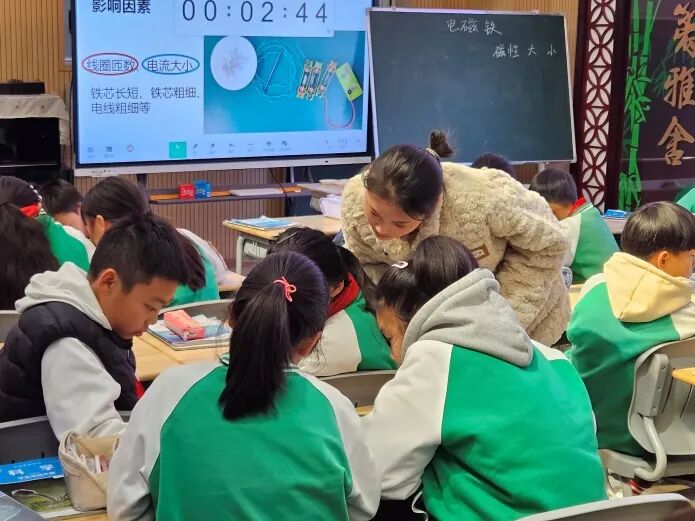 九江小学的刘林老师带来的《电磁铁》,刘教师通过实验和观察的方式,引导学生探究电磁铁的原理和应用。在实验过程中,学生设计实验,相互补充,投票出最佳方案,动手操作、观察记录、分析总结,科学思维得到了锻炼和提高。同时,教师将科学与生活紧密联系在一起,让学生感受到了科学的实用性。