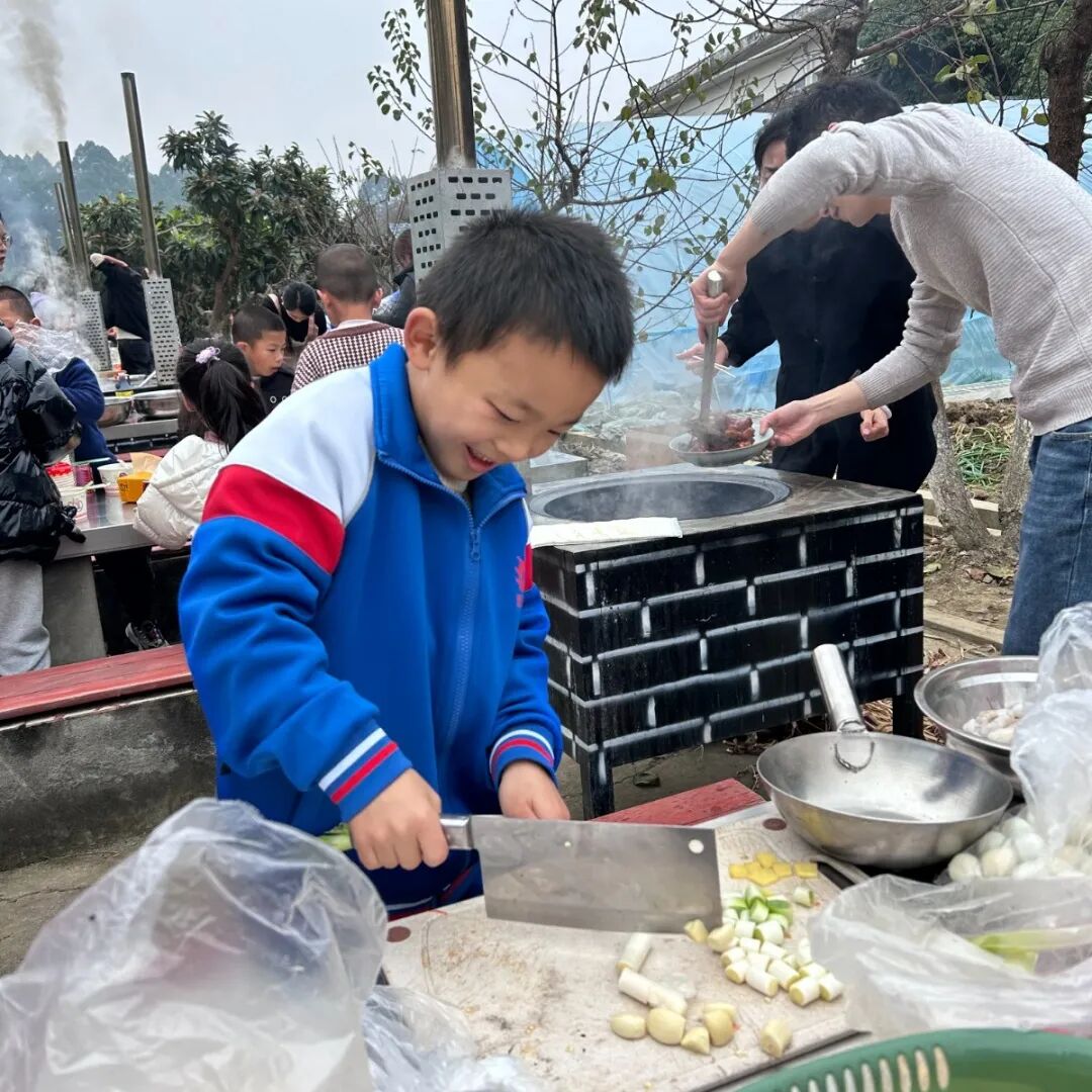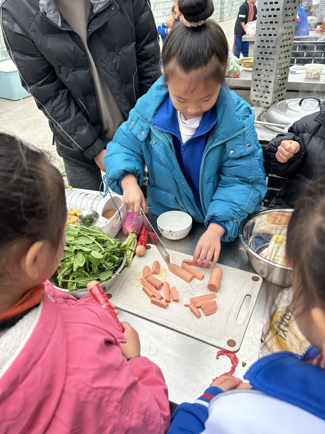 中华文化博大精深,饮食文化是中华文化不可分割的一部分,从千年前的茹毛饮血到新石器时期的人造炊具,从夏商周的青铜器到汉唐铁器的发展,人们的生产生活总是离不开“吃”这个字。劳动即生活,生活即教育。我们一年级小朋友和家长代表齐聚在学校“生活体验乐园”,开展厨艺展示活动。活动伊始,小厨师们撸起袖子,娴熟地运用手中的小刀,对材料进行削皮、切割。孩子们团结协作,有的洗菜,有的烧柴,还有的翻炒。学校“生活体验乐园”里顿时欢声笑语,芳香四溢。