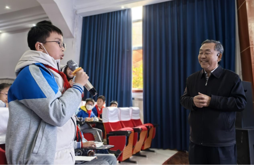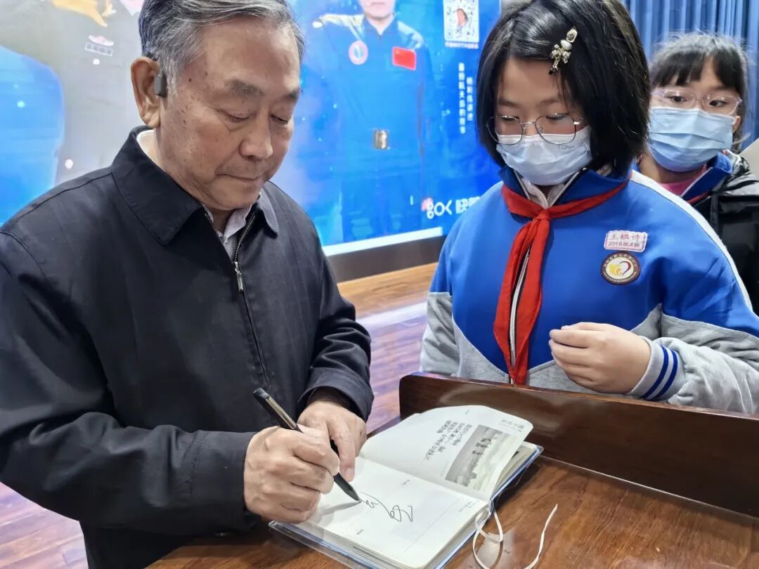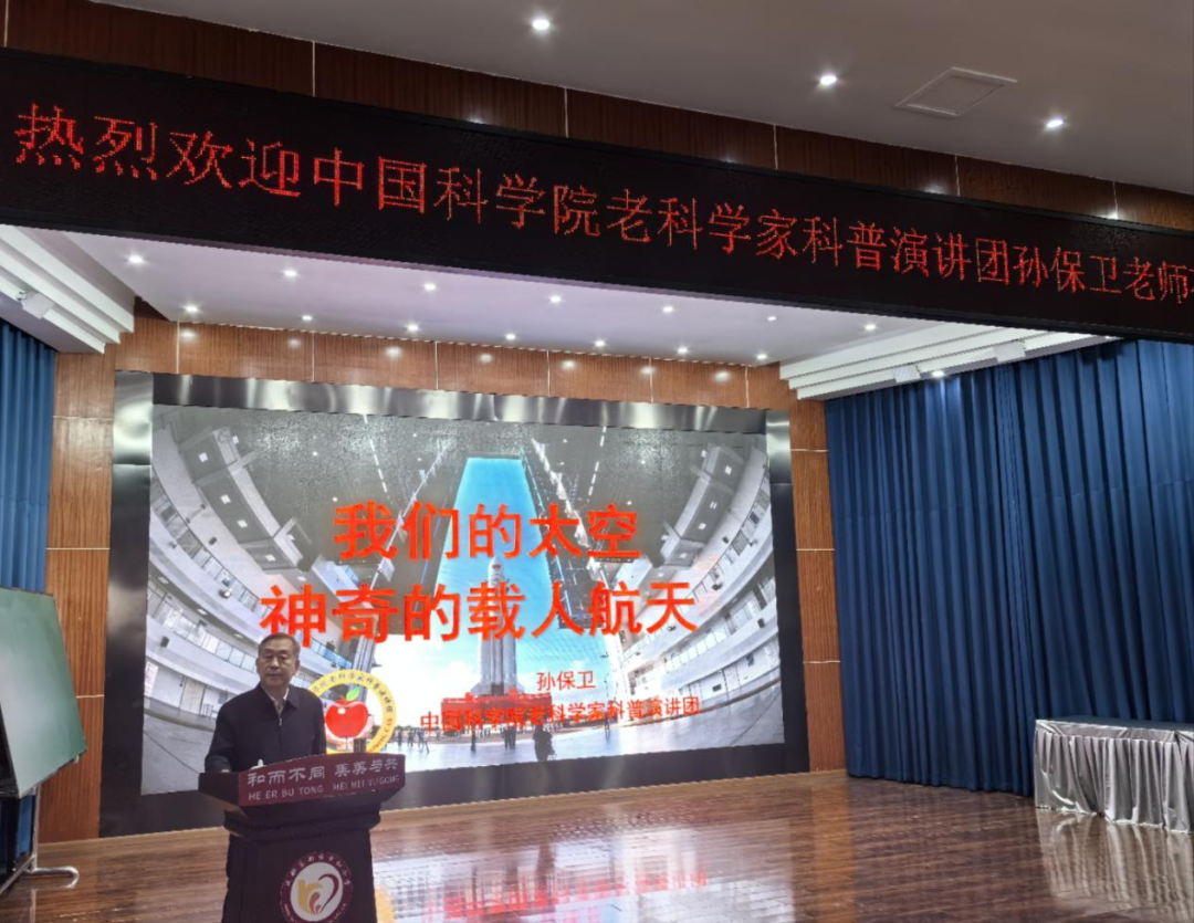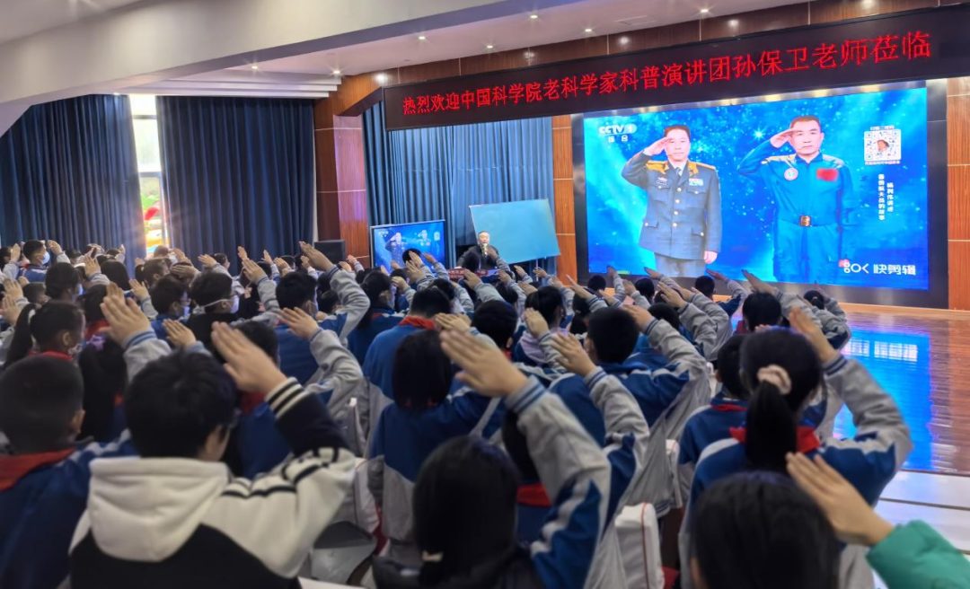 课堂上,围绕“新中国航天事业四大成就是什么?航天员是怎样飞向太空的?中国航天精神的密码是什么?”三个话题,孙保卫用自己的亲身经历和大量珍贵的第一手影视资料,和同学们一起回顾了中国航天艰难的逐梦之旅。“钱学森的三次激动时刻”“孙家栋的两次泪水”“杨利伟的生死26秒”,这些航天英雄的赤子情怀让在场师生多次泪目。正是千千万万像他们这样的航天人几十年如一日,干惊天动地事,做隐姓埋名人,在航天一线默默坚守着“特别能吃苦,特别能战斗,特别能攻关,特别能奉献”的航天精神,才将逐梦九天的梦想照进了现实。讲课过程中,孙老将中国航天事业的发展与孩子们的学习相结合,用载人航天精神、探月精神、新时代北斗精神来激励孩子们,让孩子们真切地感受到,伟大的事业是奋斗出来的;平凡的人,在关键时刻,能够挺身而战,就是民族英雄。孙老还根据当下青少年的现状,希望孩子们“不追歌星追科星,好好学习远离手机”,要做“有家国情怀的人,有奋斗精神的人,有自律意识的人,有强健体魄的人”。