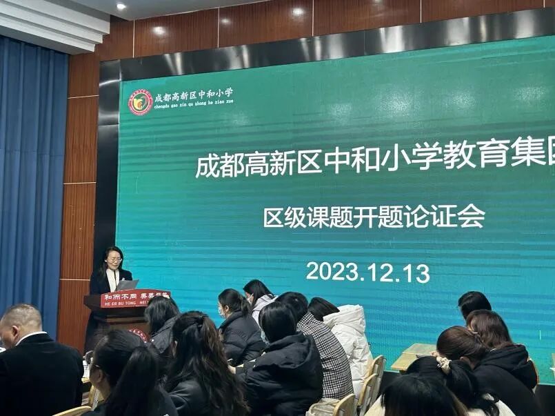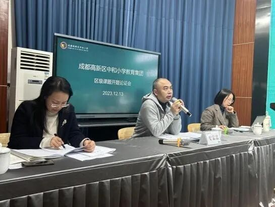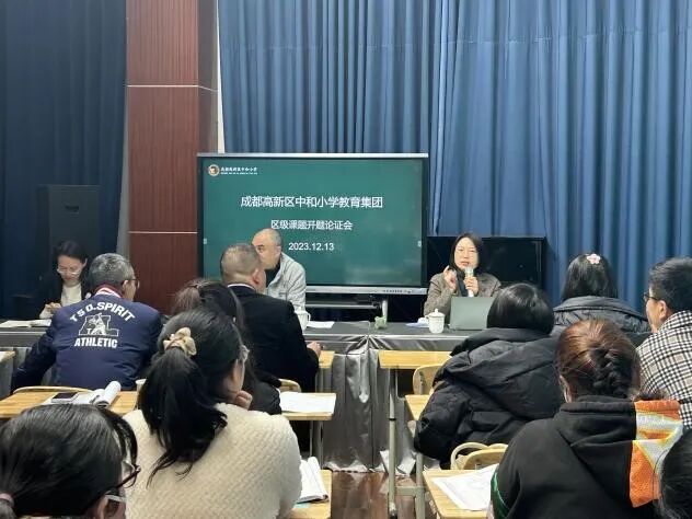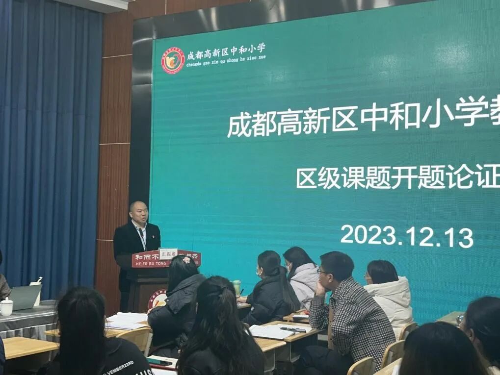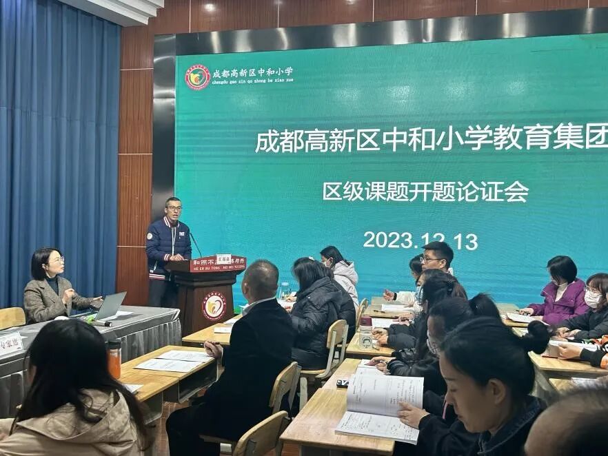 2023年12月13日下午,成都高新区中和小学在阶梯教室组织语文组、数学组的课题研究团队展开2023年区级课题开题论证会。成都高新区中和小学校长邹泽君、教科室负责人刘勇、党建办负责人傅德智、语数学科课题组相关老师出席了本次开题论证会。