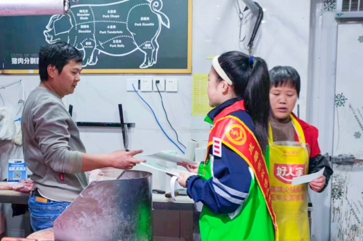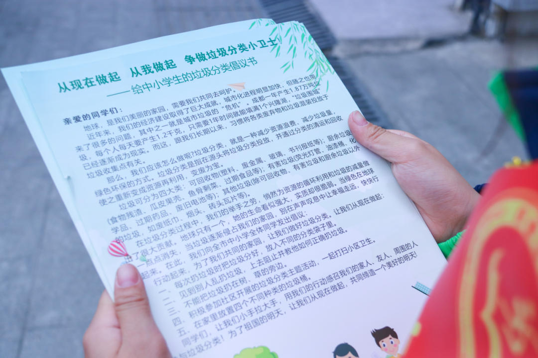 向商铺、社区居民进行垃圾分类知识宣传,分发垃圾分类宣传单,利用多种形式推广垃圾分类活动。