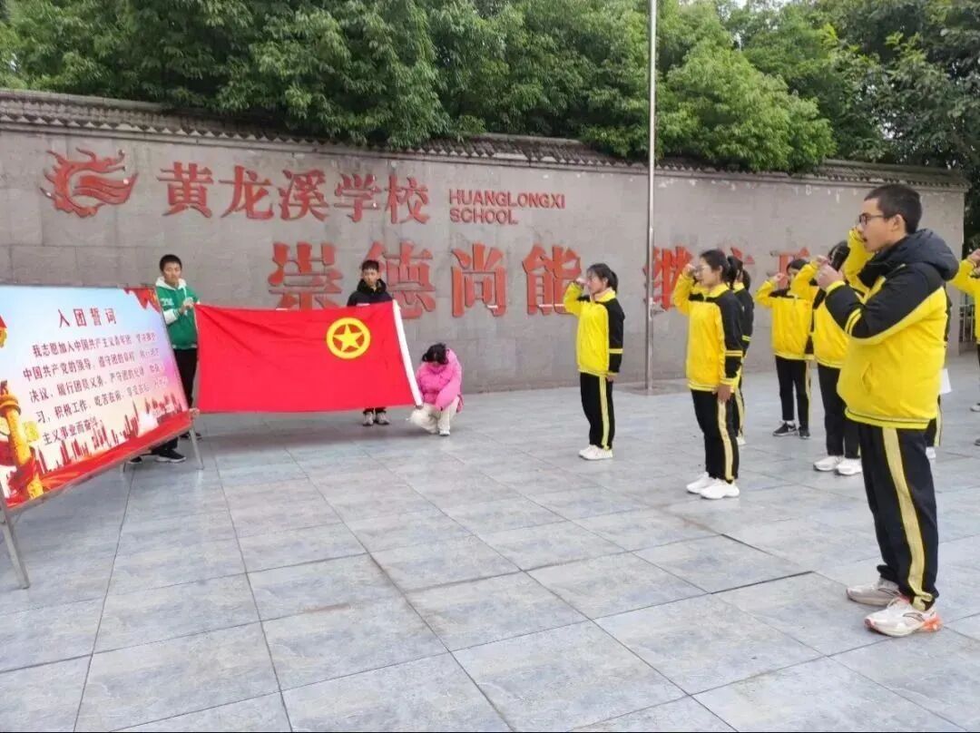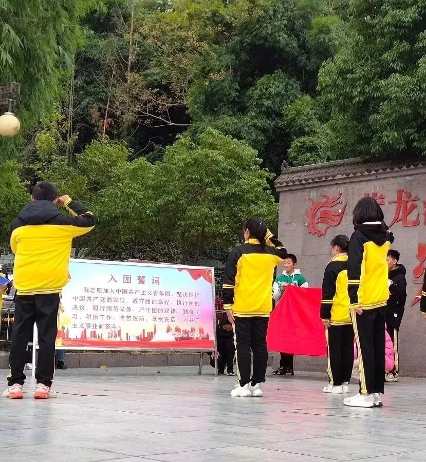 2023年12月15日,黄龙溪学校团总支组织全体师生齐聚学校操场,举行了以“青春献祖国 永远跟党走”为主题的新团员入团仪式。