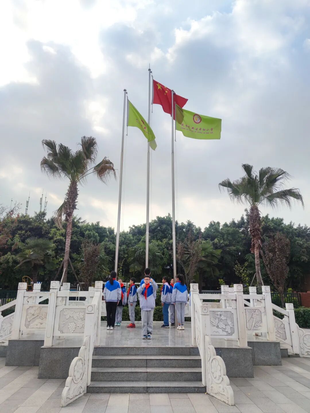 鲜艳的五星红旗,在六(9)中队的护旗手的拉动中冉冉升起,随着《义勇军进行曲》的响起,同学们面向国旗方向,仰望着飘扬的五星红旗,脸庞上洋溢出自豪又神圣的神情。