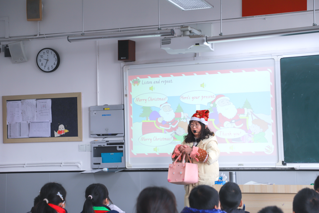 第一节课是由黄娟老师执教的四年级上册 Module 10 Unit 2 Merry Christmas!黄老师的课教学思路清晰,课堂生动有趣,同学们踊跃举手,课堂参与度高。