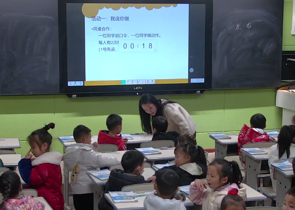 李典老师和一(9)班的学生为大家呈现北师大版一年级上册第五单元《左右》。