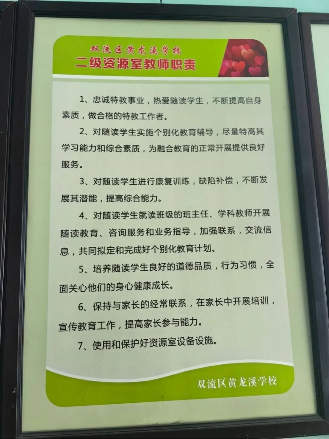黄龙溪学校是一所九年一贯制学校,2007年学校建立了融合教育资源教室,先后对24名有特殊需求的学生开展了融合教育。2019年5月黄龙溪学校资源室被评为市级示范性特殊教育资源教室。