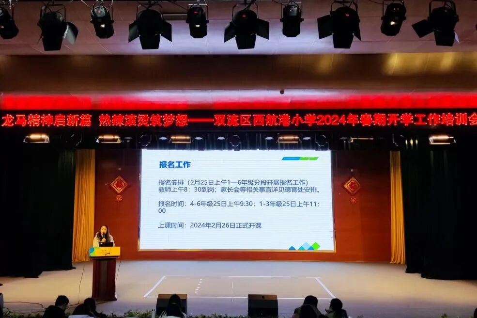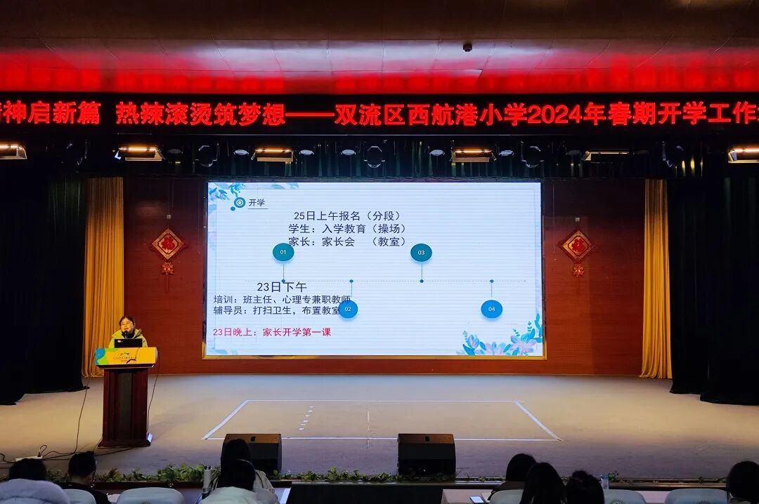 热热闹闹送春节,欢欢喜喜迎开学。开学如期而至,我们笑魇如花,满“心”欢喜。岁始辰龙,万象更新。2024年2月23日上午,迎着春日的微风,成都市双流区西航港小学全体教职工喜气洋洋,精神抖擞,齐聚德萃厅参加2024年春期开学工作培训会。