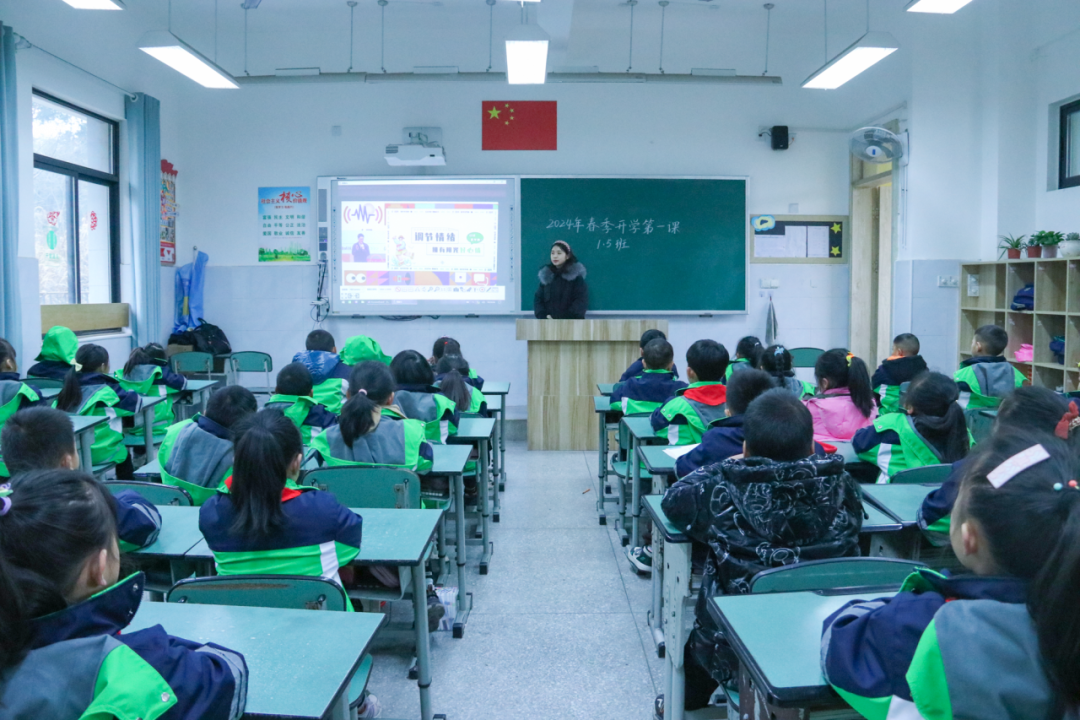 上午10:00,为了帮助孩子们以愉悦的心情、乐观的心态迎接新学期,老师们组织全体学生观看了2024年成都市春季中小学生开学第一课直播视频。