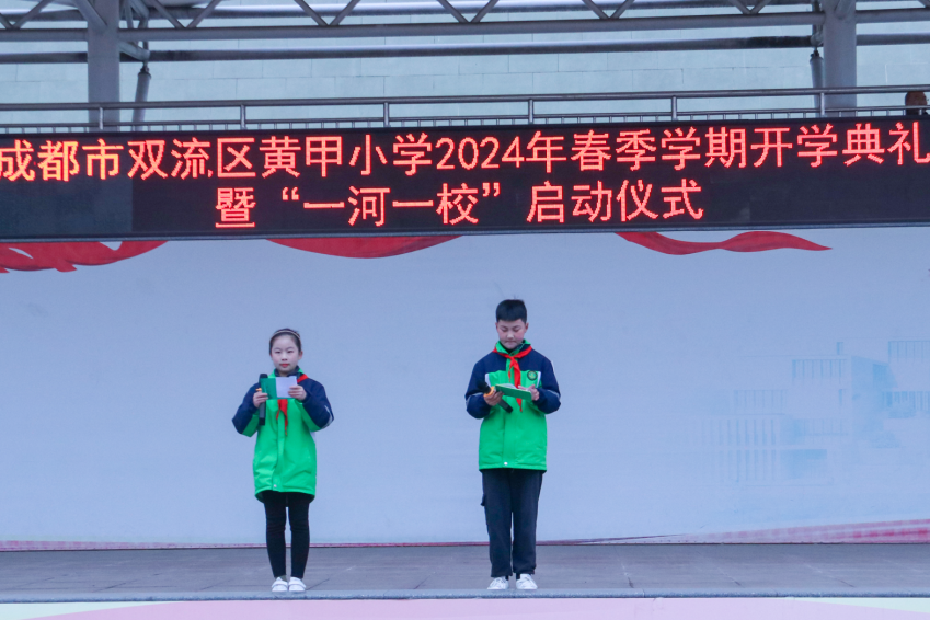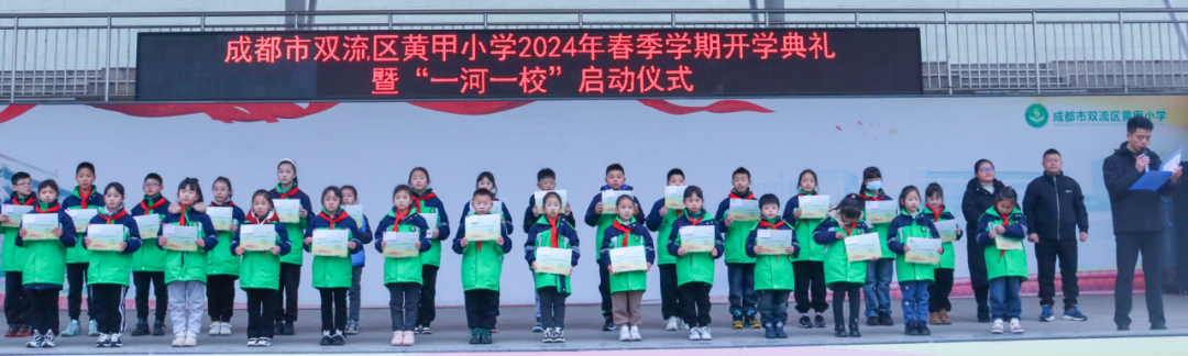 2024年2月26日早上8:30,黄甲小学全体师生相聚大操场,参加了2024年春季学期开学典礼暨“一河一校”活动启动仪式!