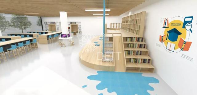 DETT教育设计研究院在为众多学校的图书馆设计中发现,图书馆作为学校的文化高地,基于其使用主导性的变革与技术赋能,图书馆成为学校中的教育资源集散地。因此,经过重构的学校图书馆会由传统的“藏书阁”变成学校的阅读中心、资讯中心、学习中心、课程发展中心等,发挥一个多元化阅读型综合场馆的功能。