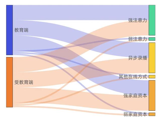 图2 数据显示教育端和受教育端在注意力、异步录播教学方式、家庭资本三个方面认知一致(示意图)