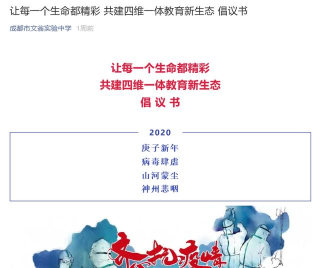 ▲成都高新新科学校发出的倡议