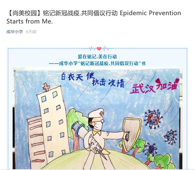成华小学则以图文并茂的形式,告诉同学们要在此次疫情中去感受榜样的力量,成为爱国娃娃。