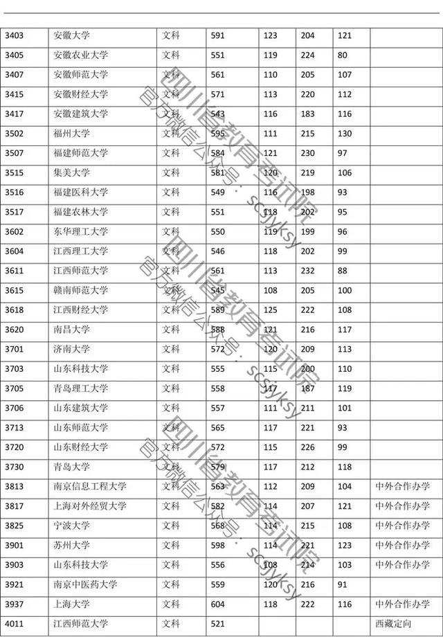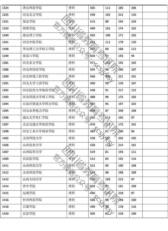由于文章中篇幅有限,为大家展示出四川高考理科排名9万名~10万名(对应的分数为526分~534分)对应的大学名单。