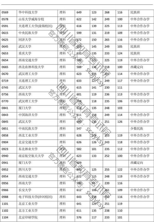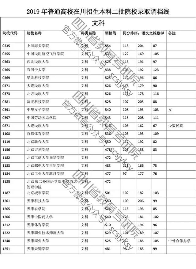 3、2019年普通高校在川招生本科一、本二批院校录取调档线