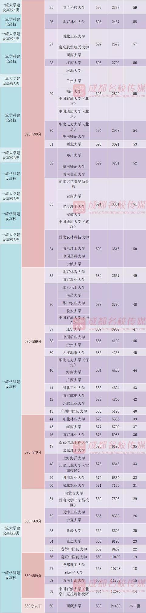 四川省高考理科2019年位次排名对应的大学,供2020年的高考生们参考!