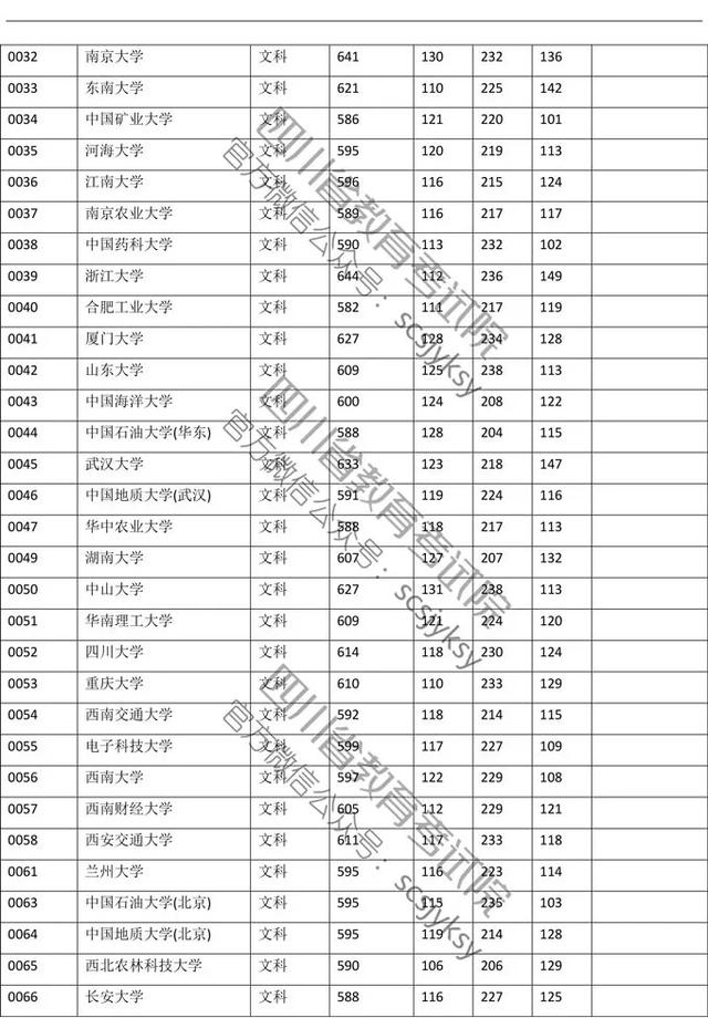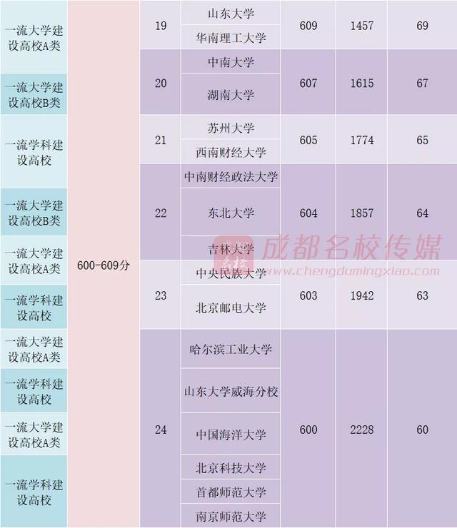 由于文章篇幅有限,只选取了部分分数与位次对应的大学名单(132所)。