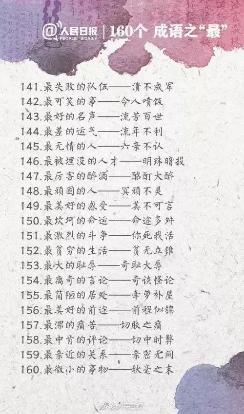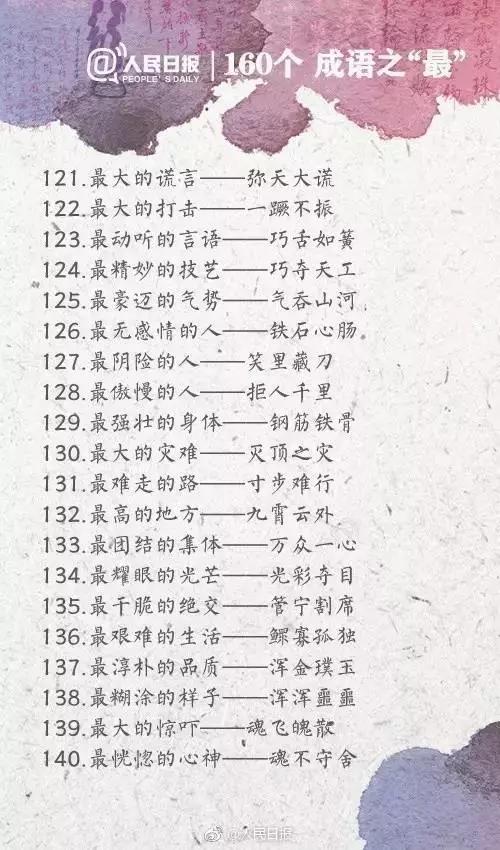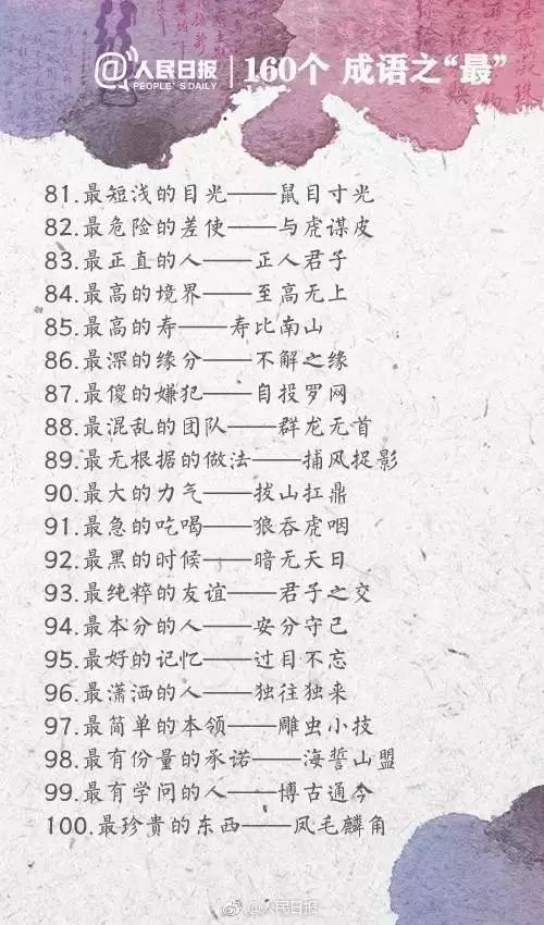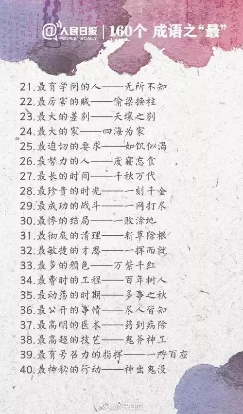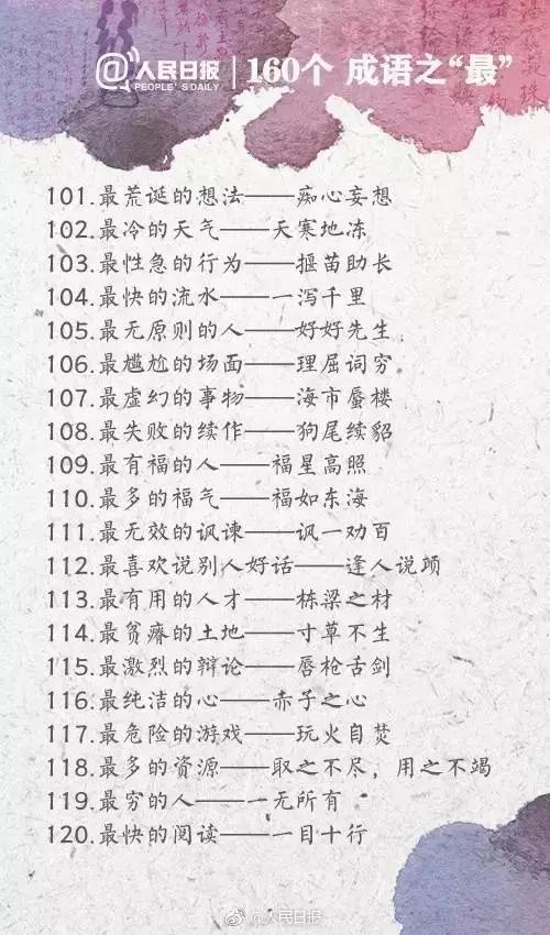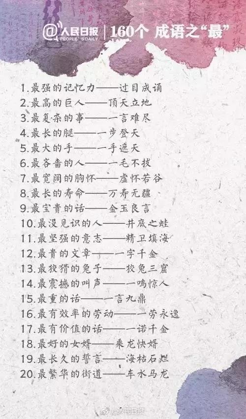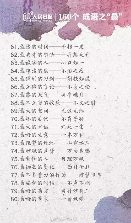 四川行知教育网讯:今天给大家带来人民日报整理的160个成语之最,有趣又好玩,家长可以和孩子一起学习起来~
