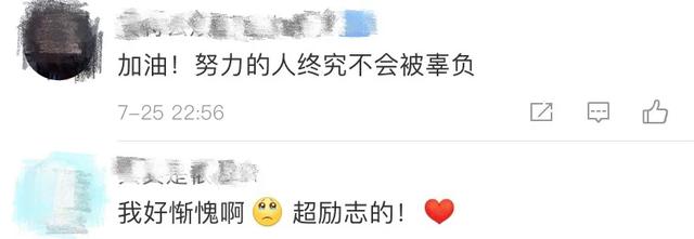 网友纷纷表示感动:“努力的人不会被辜负!”“他付出了多少努力,可想而知!”