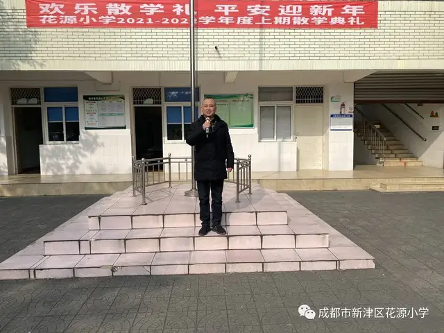 近日,成都市新津区华源小学举行散学典礼。典礼上,田校长就防疫、交通、防火等几方面对同学们即将到来的假期生活做了积极的引导。胡校长总结了花源小学本学期工作,在全体花源师生的共同努力下, 花源小学硕果累累,各项教育教学工作有序开展,同时也殷切希望同学们在寒假生活中,再接再厉,合理安排学习与休息,规律作息,积极锻炼身体,快乐地度过假期。