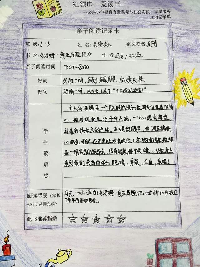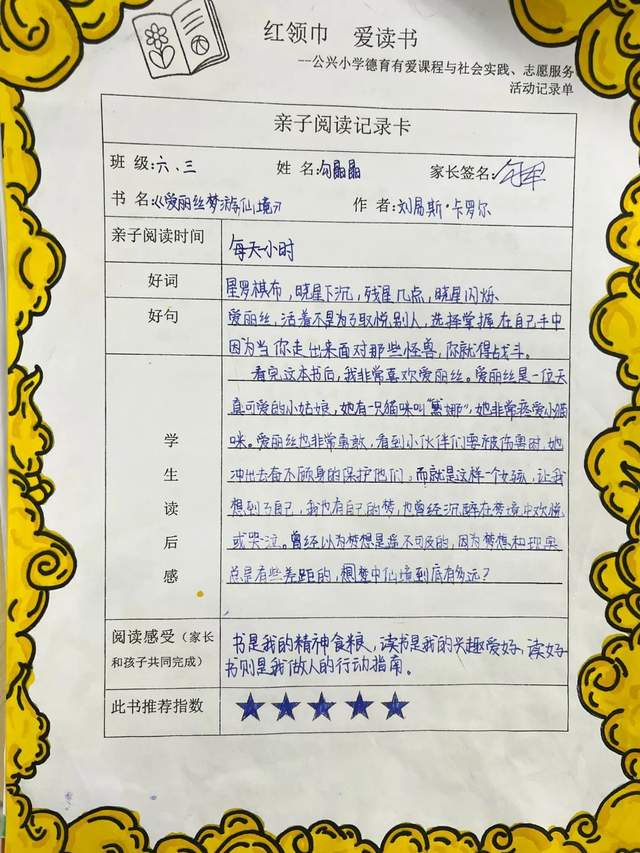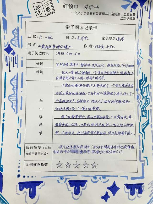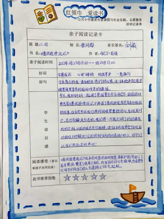 新年里,队员们利用假期与父母共同选择一本书,一起阅读,享受快乐的亲子阅读时光并图文并茂地把好词好句记录下来。
