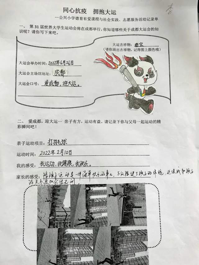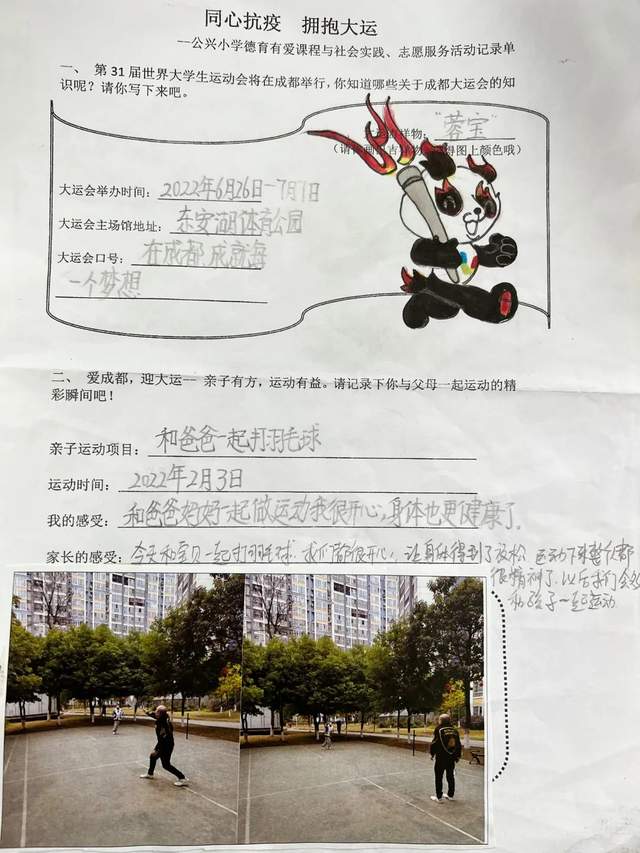 第31届世界大学生运动会将在成都举行,队员们通过各种形式了解大运会知识,为增强体魄,假期父母与孩子们一起运动,锻炼场地留下了他们的精彩瞬间。