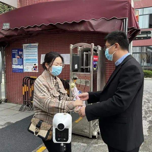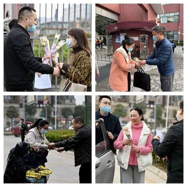 2022年3月8日早上,双流区棠湖小学(南区)全体男老师早早地来到了校门口,向到校女教师送上鲜花,并表达了节日的问候。