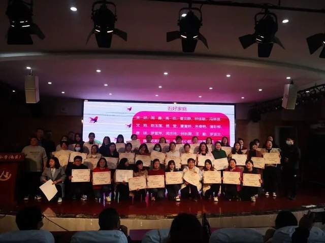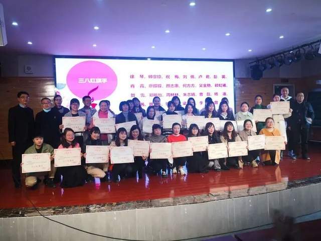 中午,全体教师齐聚多功能厅,召开巾帼风彩表彰大会。会议中对各年级三八红旗手、巾帼英雄、五好家庭进行表彰,由李春校长和男教师向各位获奖教师颁奖。