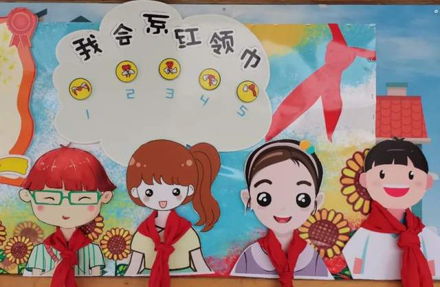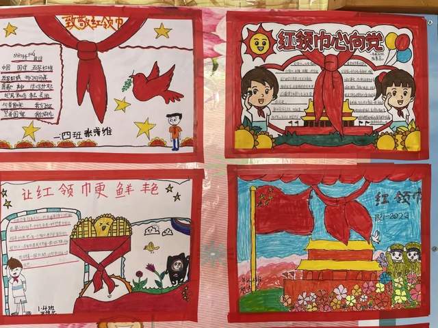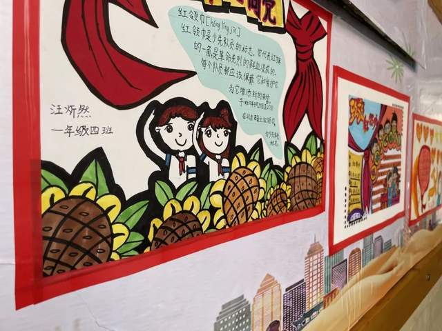 红领巾是少先队员的标志,它代表着红旗的一角,是革命先烈的鲜血染成的。为了让即将入队的一年级和美娃了解红领巾、走近红领巾,树立每个少先队员都应该佩戴和爱护红领巾并且为它增添荣誉的意识,一年级的老师们带着孩子们进了教室的环境创设。每一幅作品都体现着孩子们对红领巾的崇敬和憧憬。